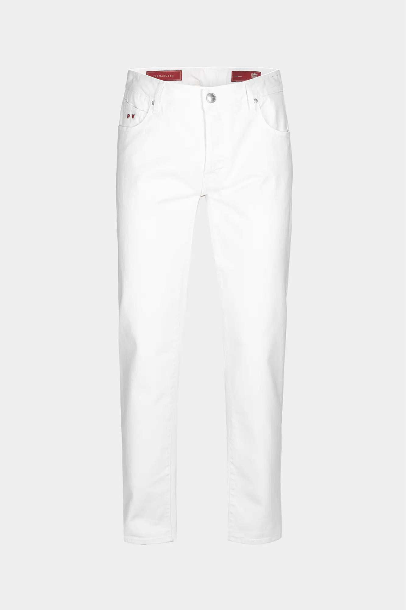 Tramarossa’s interpretation of the most contemporary carrot fit. Five pockets, mid-rise waist, slightly dropped crotch, soft leg at the thigh and tapered at the bottom.