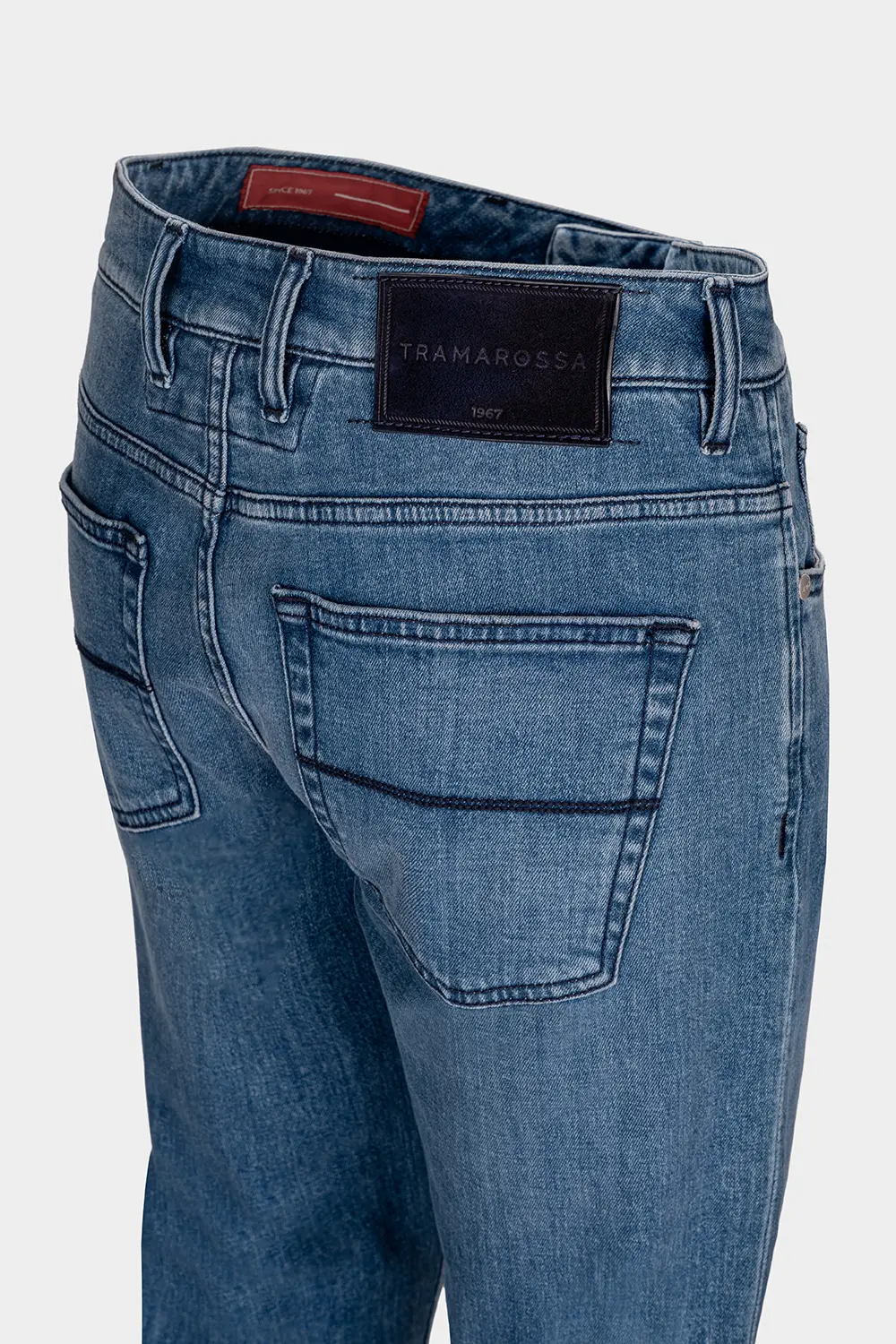 Fabric with an authentic hand, chosen for pliability in washing. The construction hides a technological heart. The innovative stretch system, although with a low percentage of stretch fibers (only 2%), ensures great “recovery” of the fabric. Denim with maximum comfort and refined premium appearance.