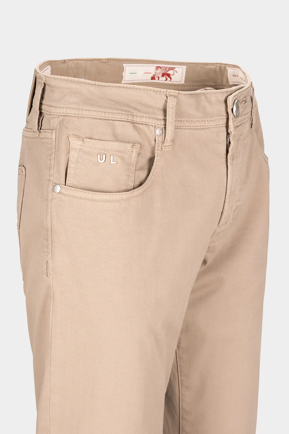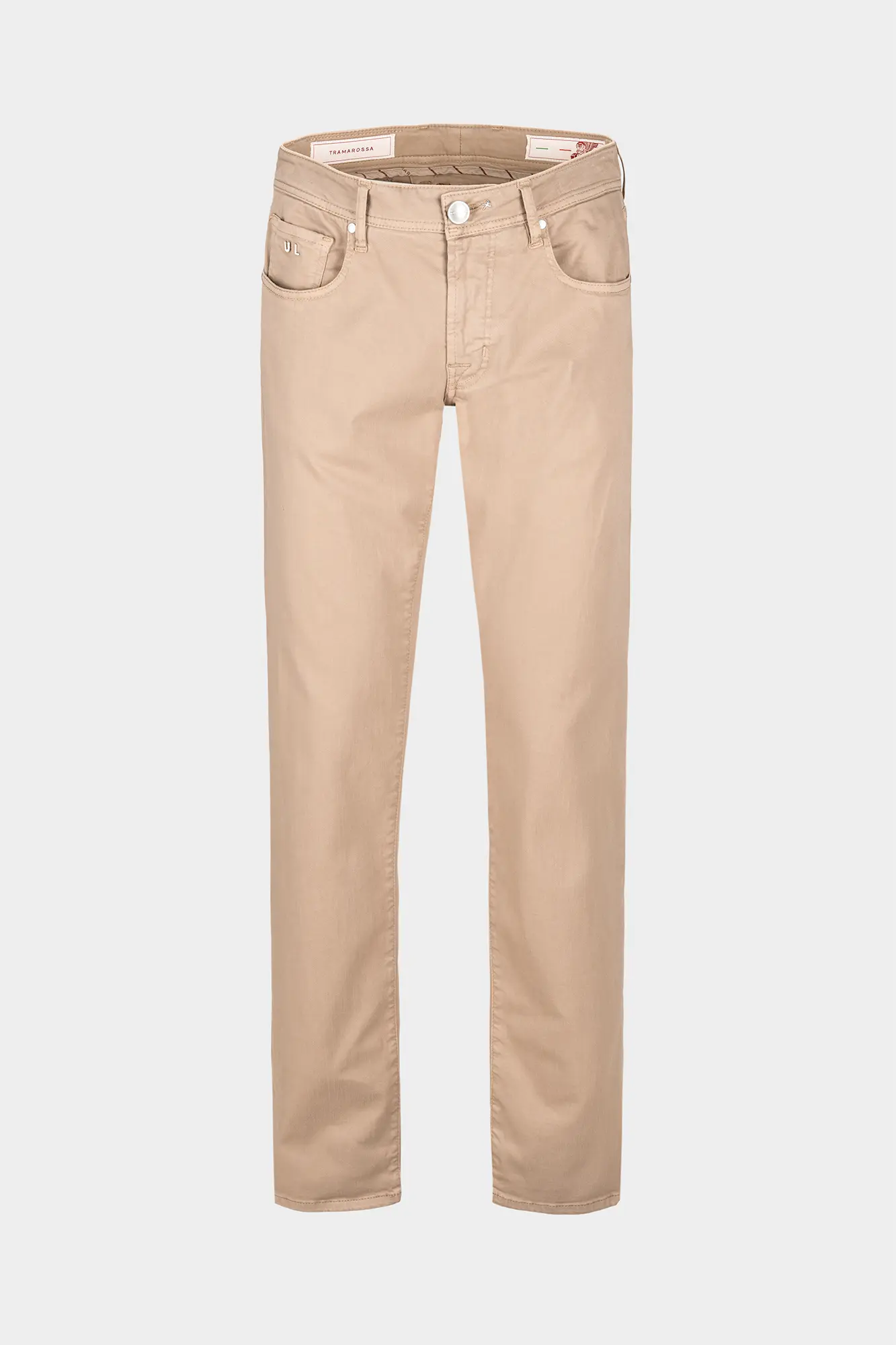 A five-pocket style with a regular slim fit, soft on the leg and at the bottom, while maintaining a figure-hugging cut. A choice that focuses on comfort without compromising on elegant aesthetics.