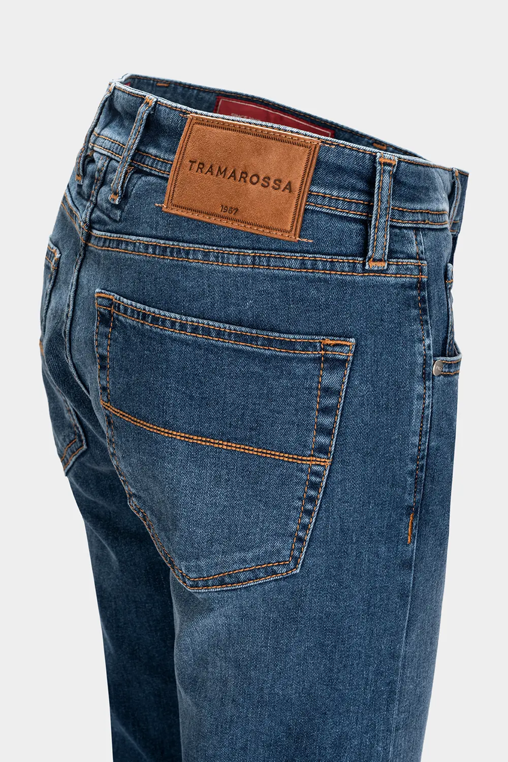 Fabric with an authentic hand, chosen for pliability in washing. The construction hides a technological heart. The innovative stretch system, although with a low percentage of stretch fibers (only 2%), ensures great “recovery” of the fabric. Denim with maximum comfort and refined premium appearance.