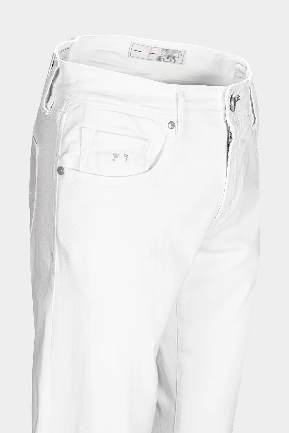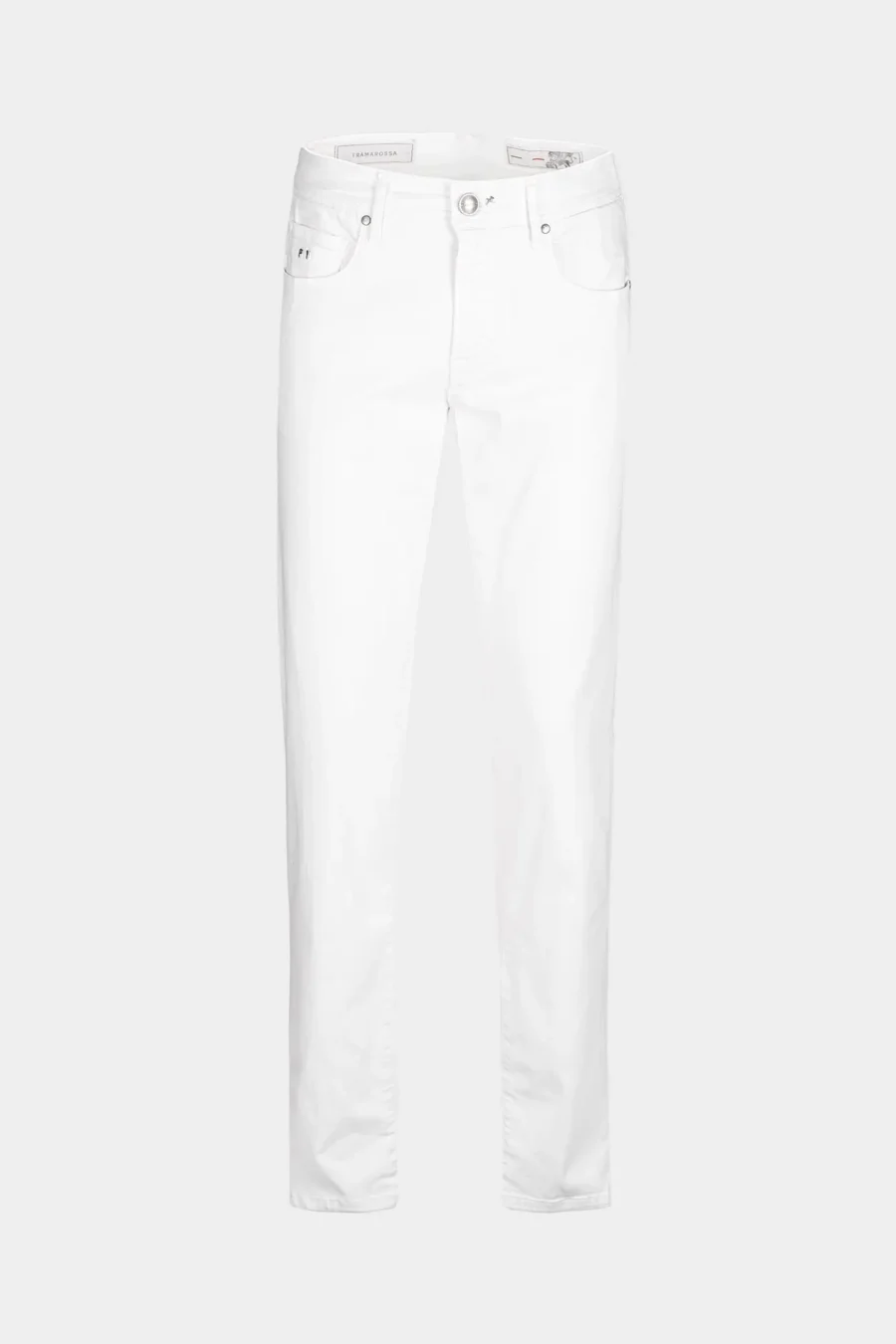 Il jeans cinque tasche dall’iconica vestibilità slim con vita media. Il modello rielabora i codici del jeans restituendo un’estetica più ricercata e sofisticata, trasformando il capo in una scelta più formale e raffinata.