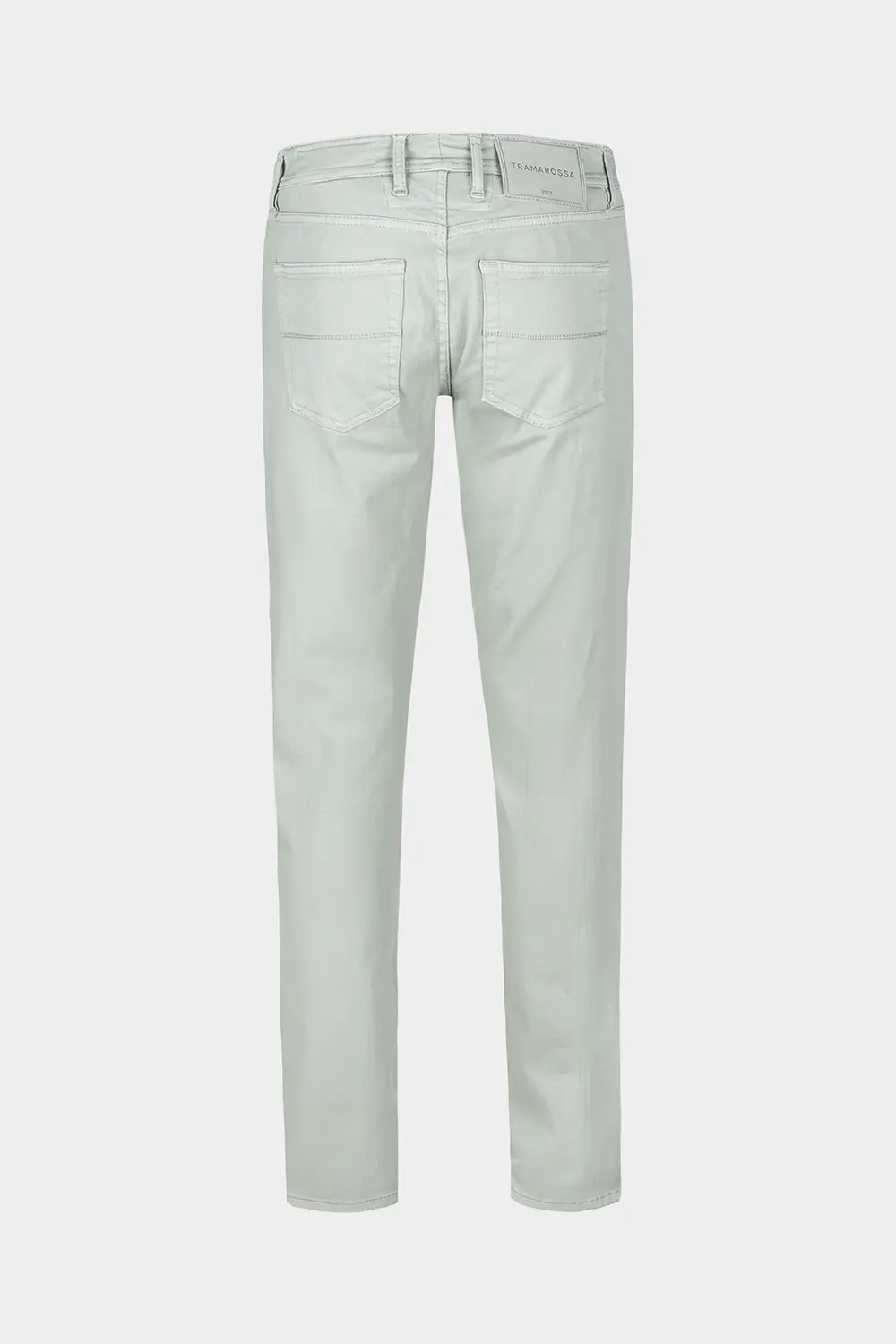 Un cinque tasche dalla vestibilità regular slim, morbido sulla gamba e sul fondo, pur mantenendo un taglio in figura. Scelta che guarda al comfort, senza rinunciare ad un’estetica elegante.
