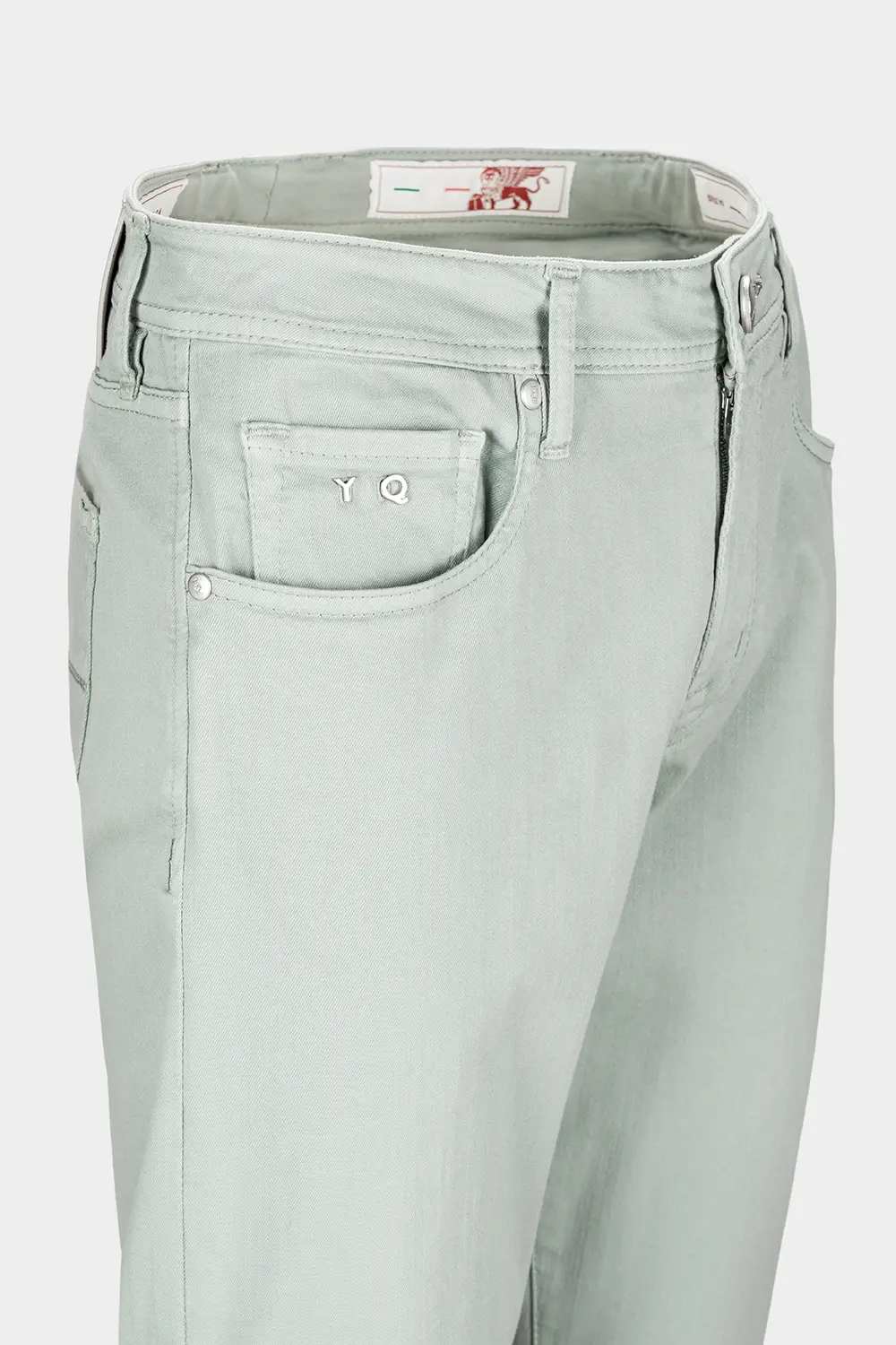 Fit regular slim, morbido sulla gamba e sul fondo, pur mantenendo un taglio in figura.