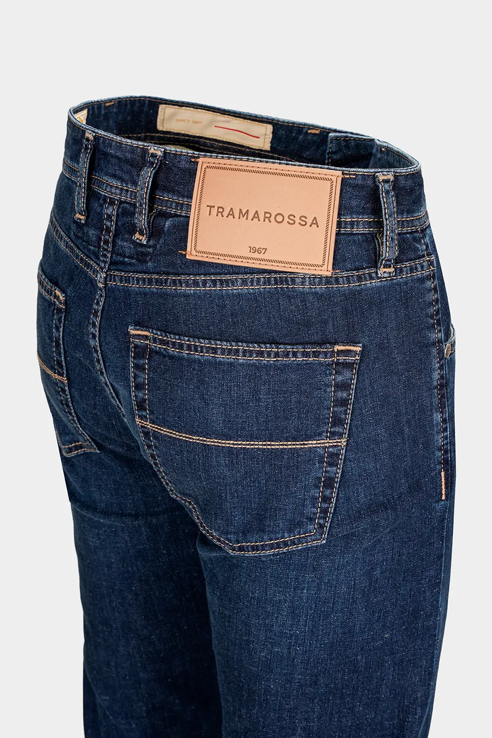Etichetta posteriore nell’iconica e ricercata pelle Tramarossa, personalizzata da logo stampato a caldo.