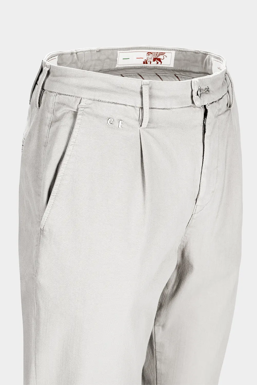 The contemporary elegance of the Pietro model is defined by the front pleats, the relaxed cut, the American pocket at the front, and the welt pocket at the back. A soft fit on the hips and legs, with a slightly tapered hem.