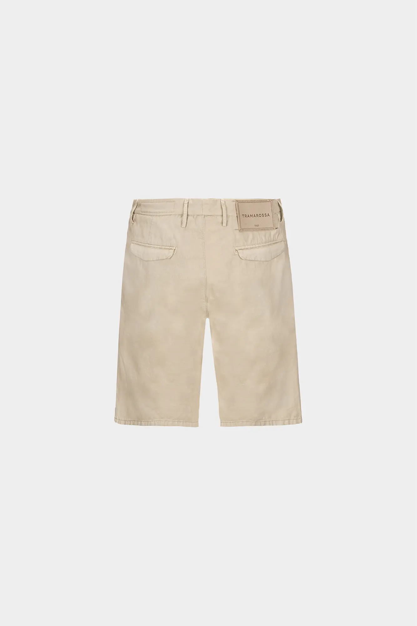 Bermuda estivo dall’attitudine casual, un pantalone corto dal taglio sartoriale, tasche frontali con taglio america e a filetto sul retro, con i dettagli iconici Tramarossa. Vestibilità con volumi regolari, lunghezza sopra il ginocchio.